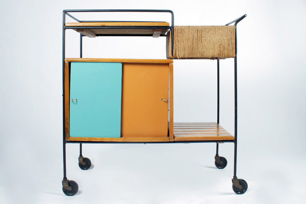 - Wrought Iron, Slatwood Serving Cart (United States 1950’s)