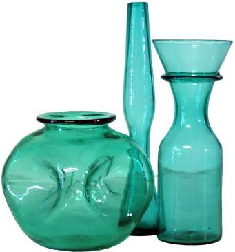 - Trio of vintage glass vases in Sea Green by the Blenko Glass Co. (USA Mid 20th Century)