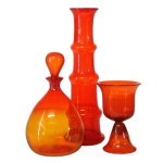 - Grouping of Three Vintage Tangerine Orange Blenko Glass Designs (USA Mid 20th Century)
