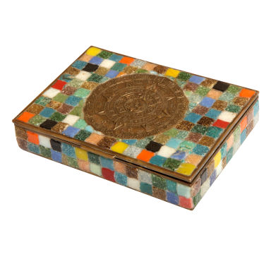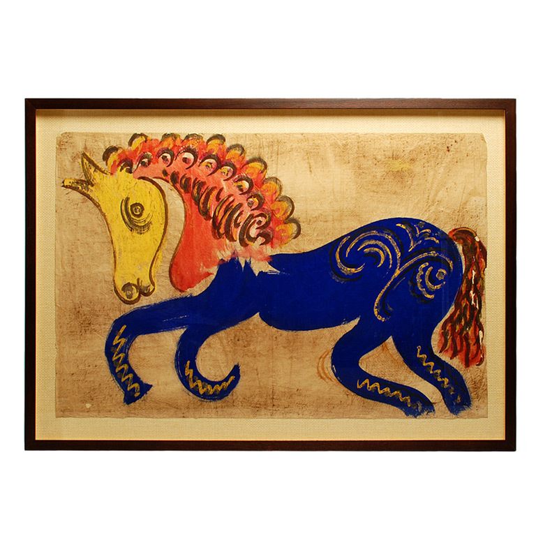 Ranging from the 16th century to the present, the above represent items hand crafted in Spain, Mexico and by Navajo artists in the Southwestern United States. The painting of the blue caballo, or Spanish horse, is a 1930s original by Mexican artist Chucho Reyes. The brightly colored mosaic glass box is from the 1940s. It’s finished with an Aztec brass medallion on top. The neutral colored Navajo wool rug is circa 1900s. It was hand-woven and constructed without the use of any dyes. These and the above are just a sampling of the history and the beauty of the Southwest.