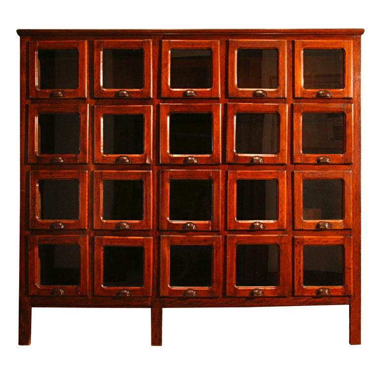 Italian Wooden Pasta Cabinet w/ 20 Glass Front Drawers, Italy Circa 1910