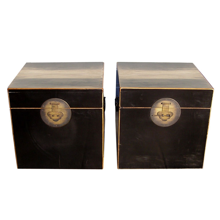 Pair of Black Lacquered Chinese Document Boxes, 19th Century