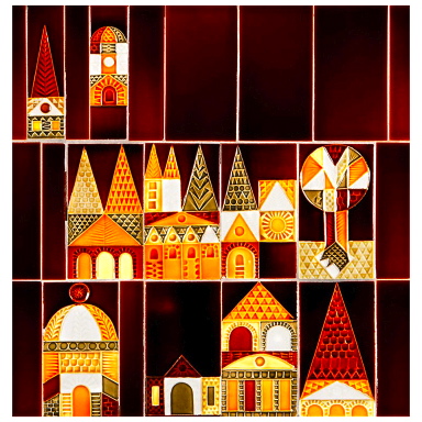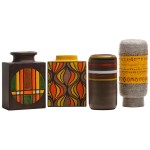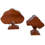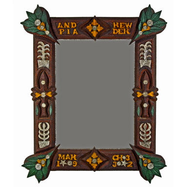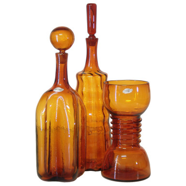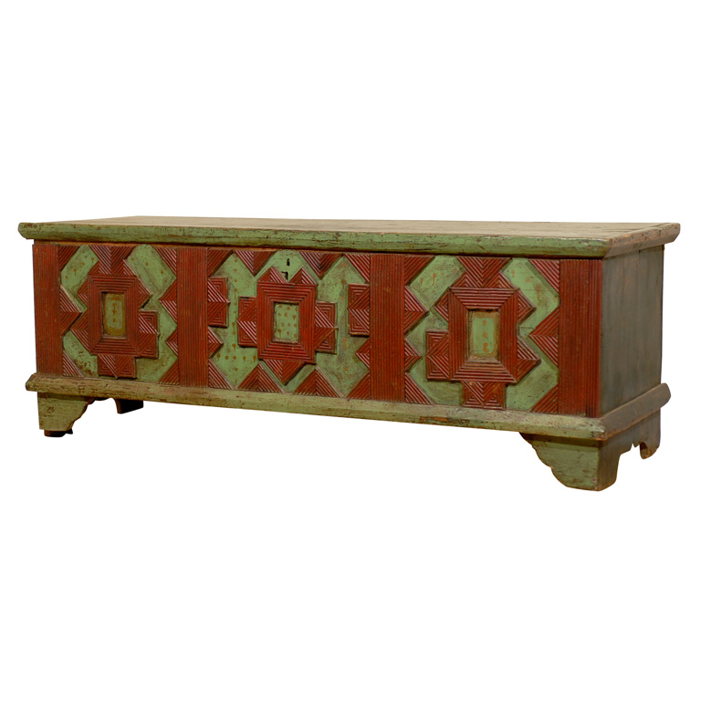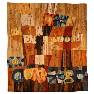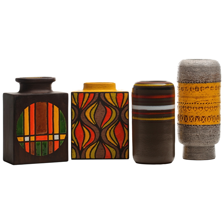 Ranging from the 1700s to the present, the above represent the rich warm colors of Fall and come to us from skilled craftsman in the United States, Italy, Brazil, Denmark and Japan, among others. The oil on canvas is by John G C Burnett, a Scottish painter of landscapes, figure subjects and Surrealist works both in oil and watercolor. The painted tramp art wall mirror with exceptional carvings of birds, hearts & a butterfly is from the Southern United States. Hidden behind the mirror is a secret compartment. The set of sculptural wooden trees are from the 1960s. The tops slide off to reveal jewelry compartments, two in the small tree and four in the large.